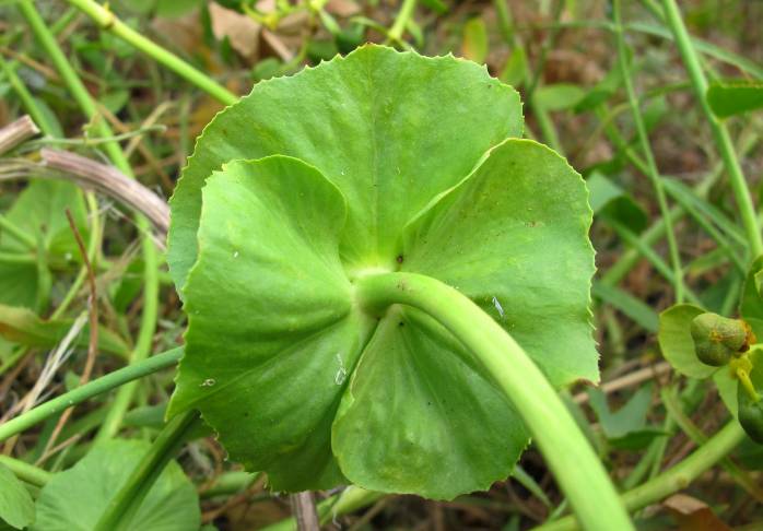 Hierba perenne, rizomatosa, glabra, de base ± lignificada, que puede alcanzar hasta 45 cm de alto. Hojas caulinares alternas, sésiles, marcadamente dentadas, linear-oblongas las inferiores, ovado-lanceoladas las speriores. Pleocasio usualmente con 3–5 radios, con frecuencia bifurcados una o dos veces; brácteas pleocasiales de ovado-lanceoladas a suborbiculares; brácteas dicasiales anchamente ovadas, amarillosas. Frutos 5–6 x 4–5 mm, largamente pedicelados, glabros,marcadamente sulcados, dehiscente en tres cocas redondeadas.